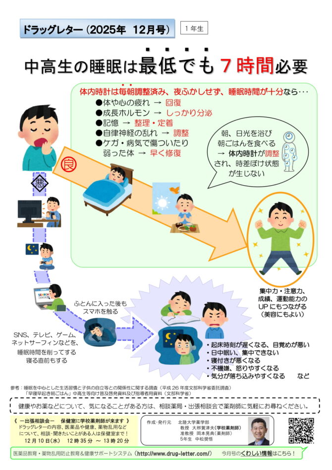 2025年12月号(高1)中高生の睡眠は最低でも7時間必要